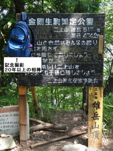 雄岳頂上で相棒リュックの記念撮影 意味不明?