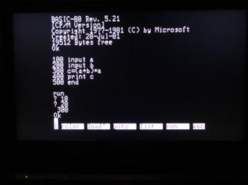 C CP/M49Kを立ち上げ、dirコマンドでMbasicを選択した画面