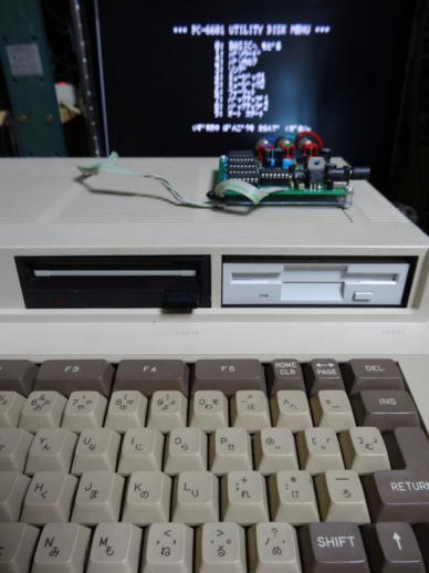 写真3は、ドライブ1の電源スイッチをOFFにして、ドライブ2へユーティリティディスクを挿入し起動した画面です。 前述とは逆に1DのFDはドライブ1では使用できません。