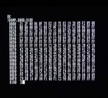 実行結果は、なんといきなりBASICが立ち上がります。 トラ技を読めばそういうことかと納得できます。 BASIC上でDUMPコマンドやCMも使えます。 写真3がDUMPコマンドの実行例です。