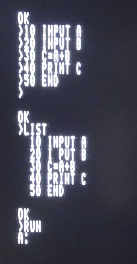 で、問題は、BASICですが、プログラムを書き込み、RUNさせたのが写真4ですが、「A」の値を入力した結果が写真2のようになり、文字化けだらけで正常に動いていません。 よく見ると写真4のLIST20のINPUTも文字抜けが生じています。 という事で、モニタROMの改造・修正、バスライン、ケーブル等の見直し等、安定化への道はこれからです。