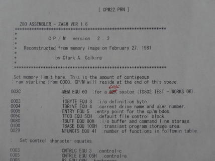 写真1 CP/M 2.2 アセンブル・リスト