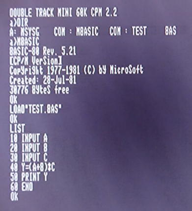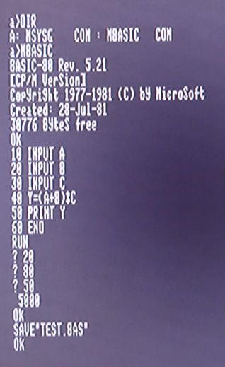 @ 基本的には、ダウウロードしたMBASICのCOMファイルを、CP/Mを立ち上げたRAM上の100番地から書込み、書込んだものをCP/MのSAVEコマンドでFDへセーブするというものです。 セーブ用のFDは、前回「CP/M No19」で作成した「システムディスク」を使用します。
