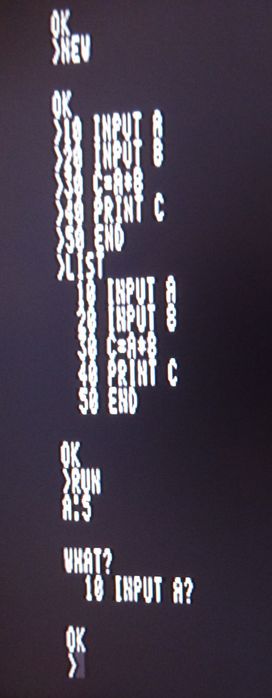 写真2のように全体を組み上げますが、現状では作業がやり易いように、ND(ZVはトラ技ボードの4個所のゴムブッシュの上に載せているだけです。 組上げた状態で動作確認を実施した結果、モニタは正常に機能し、BASICも一応、立ち上がりました。 しかし、写真4でも分かりますように、以前のテスト結果と同様にプログラムモードではINPUT等のコマンドが認識されない不具合は残っています。 この件については今後、調査しますが、プログラムが難解ですので、かなり時間が掛かりそうです。