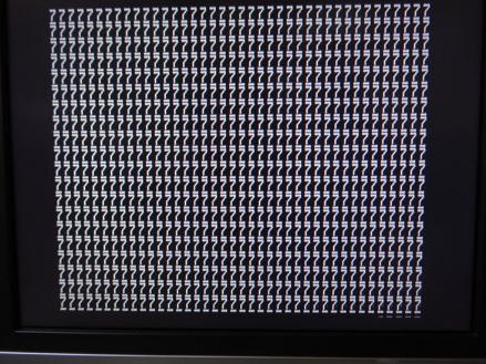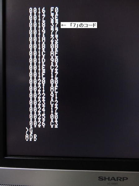 因みに写真5はMコマンドで作成した、ある文字(ここでは数字の7)で画面を埋める簡単なプログラムをGコマンドで実行中の写真で、写真6は実行後の写真です。 前回から気付いていたのですが、何故か表示される文字にアンダーラインが入ります。 今のところ実害はないのですが、追々調べます。