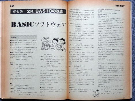 先日、幸運にもヤフオクで発見し入札でゲットした5冊(I/O 1977年8月号〜12月号)の内の9月号と12月号です。 いずれも「東大版の2K Tiny BASIC」で、発売当初はプログラムが入ったソノシートが付録でついていたようです。 入手したものには、当たり前ですがソノシートは付いていませんでしたが。