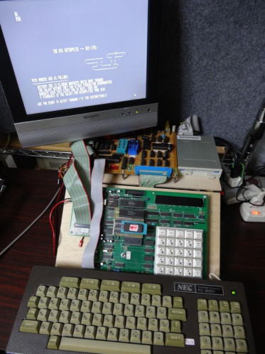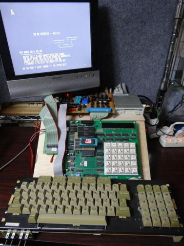 写真5は改造したキーボードでSTARTREKを立上テストしているところです。 問題なく機能しました。 写真6は一応、PC8001のキーボードカバーも付けられますので、付けてみた写真です。 かなりコンパクトになりましたので、狭い作業台上でも置く場所の問題や、取り扱いがかなり楽になりました。