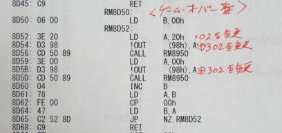 写真6、写真7は、ゲーム・オーバー時の「GAME OVER」文字の点滅を見易くするためのタイマーで、TK80互換モニタのD3タイマーのサブルーチンを使っています。