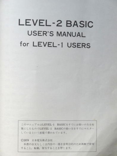 写真3 TK80BSのLEVEL−2BASICの表紙
