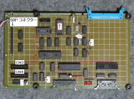 写真2、写真3は、今回新たに作るTK-80用の増設基板です。 この増設基板については、最初はトラ技ボード上に回路を増設することを考えましたが、TK-80との接続はあくまでテストですので、最終的に増設基板の形とし、写真4、写真5のように、「BASIC No46」で使用した50Pのコネクターを使用する形にしました。