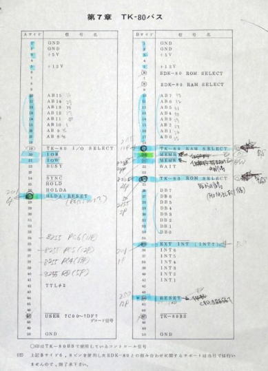 写真1は、TK-80(E)のバスの表です。 今回使用する予定のバスは、次の通りです。