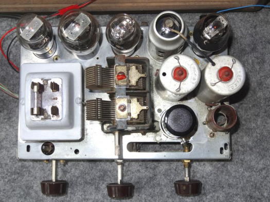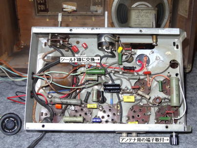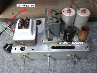 @ 交換しましたコンデンサ類は写真1の通りで、主要なコンデンサはほとんど交換しました。 交換後のシャーシ内部が写真2ですが、ブロックケミコンはシャーシ上部の写真3の位置です。 値は多少、交換前と異なりますが、気にしなくて良いところがレトロ真空管ラジオですね。 抵抗類は問題がないようなので交換しませんでした。