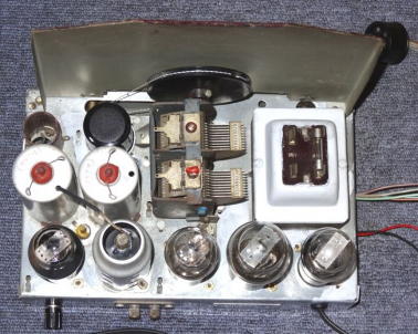 写真5は、ダイヤルの指示針等、バリコン回りのパーツを再取付し、切れていたバリコンの糸は、ラジオ少年から購入した糸と取り換え、バリコンの動作範囲を再調整した後の写真です。