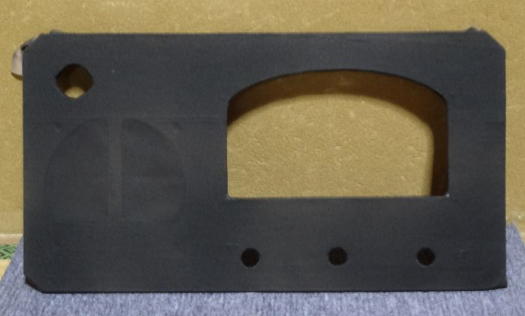 気を取り直し、何とかしようと考えた結果、サランネットを塗装することとし、艶消しの黒のラッカーで前面塗装してみたのが写真3です。 ボックスへはめ込んでみたのが写真4です。 そこそこ見栄えも良くなったようなので、これで進めることにします。