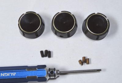ツマミのイモネジが回り難いと思って取り出しますと、写真2のように真鍮製のため、割れたり変形したりしていましたので、交換しました。 交換したイモネジ(4Φx8)は頭が6角です。