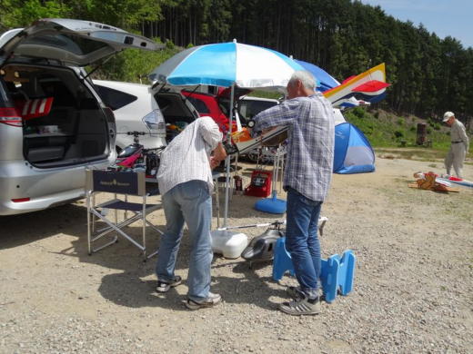 不具合の大きな原因は、当方がメインギアを交換した際にメインマストとオートロ軸を固定する穴の位置を間違えていたことでしたが、Nさんに調整してもらっている途中で気がつくなど、その他、当方のミスが重なりNさんとOさんにはかなり手を煩わせてしましました。 お蔭様にて、なかなか独学では難しい、具体的な機体の調整方法を、より理解できるようになりました。
