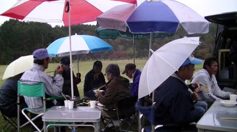 競技終了の後、小雨がパラツキましたが、炭火を起こしバーベキュで盛り上がり、その後、表彰式とお楽しみ抽選会が行われました。