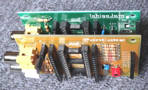 で、その中で更に試食してみたい、名前も美味しそうな「IchigoJam&PanCake」と「MachiKania」の2種類のボードを見つけました。 何れも嬉しい事にBASICが走る、超小型のワンボードマイコンですが、IchigoJam(写真1)は教育用のマイコンとして既に定番になっているようで、当方が知らなかっただけで、PanCake(写真2)はIchigoJamと写真3のように合体させて使用する、サウンドグラフィックボードです。