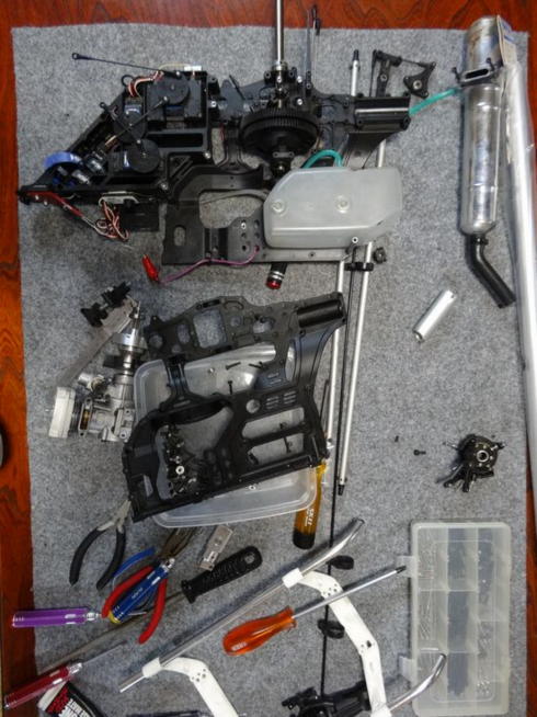 2015年の暮れに練習機のSDXが背面ホバの練習中に墜落、大破(写真1)。 修理と調整にかなり時間がかかることは明白。