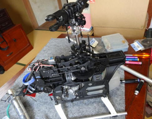 1年以上ほったらかしのエンジンが掛かるかどうかと思っていましたが、あっさりと掛かりました。 しかし、テイクオフと言うところで、スロットルは効いているのにメインロータが回転しません?!。