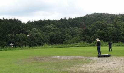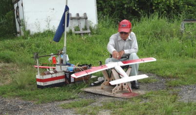 1年以上のブランクの付けが出たようなミスで、スッタモンダしながら、やっとホバの調整までたどり着き、会長さん、上級者のKさんにもご指導いただき、キャブの開閉とスロットルの感じを調整。 何とか以前の機体と同じような動きとなり、エンジンの慣らしも兼ねて、ノーマルで上空飛行まで終了しました。