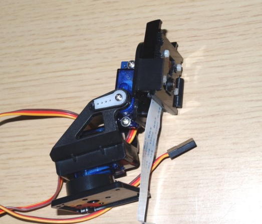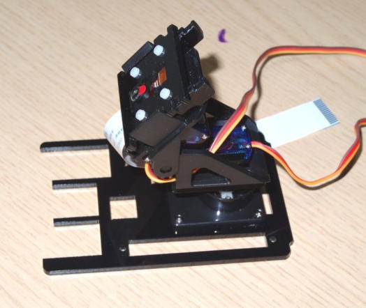 カメラモジュールをカメラマウントへ取付けるパーツは付属されていないので、どうするか考えた結果、別にアマゾンからカメラホルダーレンズマウントスタンドなるものを購入し、写真7、8のように加工して、写真9、10のように組立て、カメラマウントに取付ました。