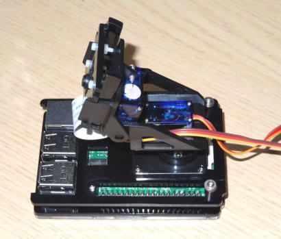 先ずは、リモートカメラですが、今回は全体のシステムの機能のテストが目的ですので、ドローンでの経験を生かして極力シンプルにすることを考えました。 カメラマウントは、アマゾンで購入した中華製のSG90ミニサーボ用カメラマウントを使用し、同じくアマゾンから購入しましたRaspberry Piの保護ケースシェルカバー(写真3)の上に乗っけるように取付ますので、最終的には写真4のようにかなりコンパクトになります。