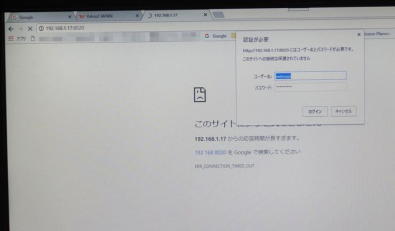 Wi−Fiがつながれば、写真3のようID、PWの確認画面が表示されるので、デフォルトのID、PWの場合は次のように入力しますと、写真4のようにスタート画面が表示されます。