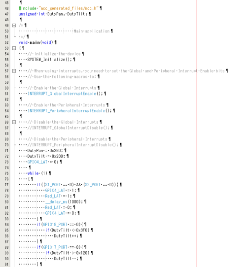 ・ 各モジュールの設定が終了すれば、「Generate」ボタンを押してコードを自動生成させます。 写真13は、自動生成されたmain関数の一部です。