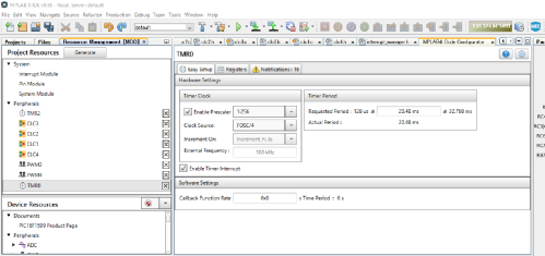 ・ 「Device Resources」のTMR0、2をダブルクリックして開いたダイヤログで設定する。(写真10)