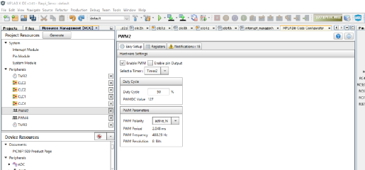 ・ 「Device Resources」のPWM2またはPWM4をダブルクリックして開いたダイヤログで設定する。(写真11)