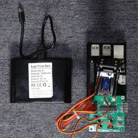 写真9 モバイルバッテリとリモコン・カメラの接続