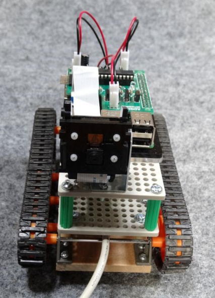 試作タンクの大体のイメージを浮かべながら製作しましたが、細かいところでいろいろ調整に手間取りました。 ラズパイに接続するカメラ(写真1)は、以前報告しました「トラ技第2弾 Wi-Fi・リモコンカメラ製作」で使用したものを、市販品の金具を加工してRaspberry Pi用プレートに固定しました。 取付位置は、USBコネクタを使うため、写真2のように左側にずらして取付けました。