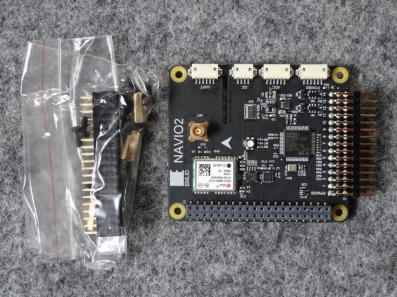 写真1がNAVIO2フライトコントローラシールド関連のセットです。 写真2が本体で、写真3、4がRaspberry Pi3へ搭載した状態です。
