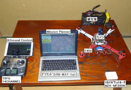 写真1が今回テストしました、屋外でオートパイロットの飛行テストを実施するための基本システム構成です。 今までは屋内でNTTの既設の無線LANルーターを使用していましたが、屋外での使用を考え新たにUSB電源で使えるプラネックスのマルチポケットルーターMZK−MF300Nを入手しました。 これで一応、屋外でオートパイロットシステムのテスト飛行がが可能となるはずですが・・・・。