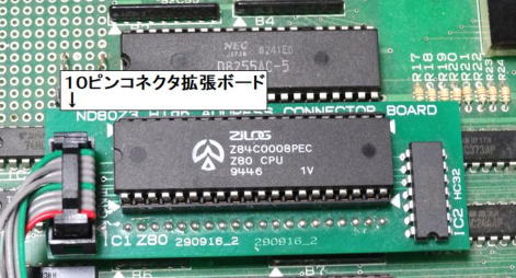 写真4のようにND80ZVには、マイコン独立セット関連のボードと接続するための「10ピンコネクタ拡張ボード」が必要ですが、最新版のND80Z 3.5では必要ありません。