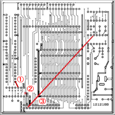 A コネクタCN2の4番ピンから出ているパターンをカットする。