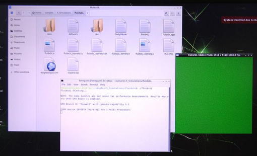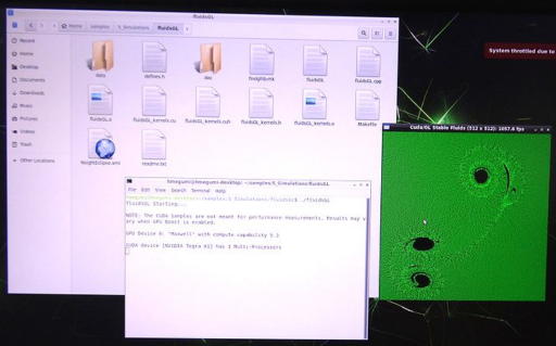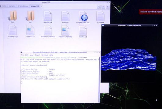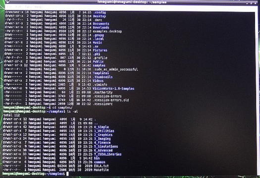![]() 写真1 JetPackのバージョンの確認 ![]() 写真2 JetPackのサンプル一覧 CUDA選択 ![]() 写真3 CUDAのsamplesファイルのコピー ![]() 写真4 コピーしたsamplesディレクトリの確認 ![]() 写真5 samplesファイルの内容確認 ![]() 写真6 fluidsGL内でTerminal実行 ![]() 写真7 fluidsGL スクリプトで実行 ![]() 写真8 fluidsGL 実行画面の水面をマウスで動かす ![]() 写真9 oceanFFTの実行画面 ![]() 写真10 smokeParticlesの実行画面その1 ![]() 写真11 smokeParticlesの実行画面その2 ![]() 写真12 smokeParticlesの実行画面その3 |