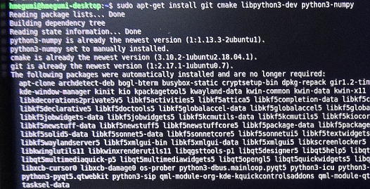 次にPyTorch(パイトーチ)のインストール画面(写真5)が表示されるので、forPython3.6を選択し、ビルド後にプロジェクトのプログラムやライブラリ、サンプルが展開(写真6)されます。 $ make $ sudo make install