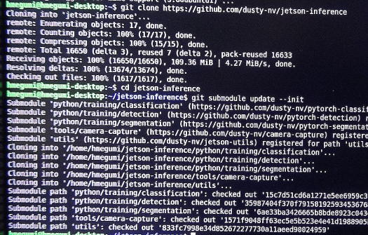 このプロジェクトは、あくまでCUDAコアを利用しての推論(inference)の動作確認用で、学習(Training)は含まれていないようです。 何しろ、ディープラーニングなるものは、初めて試食するため作法が全く分かっておりませんので、次のサイトを参考にさせていただきました。 Jetson nanoで組み込みAIを試す(3)