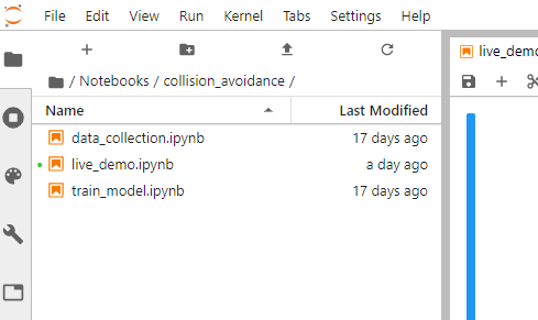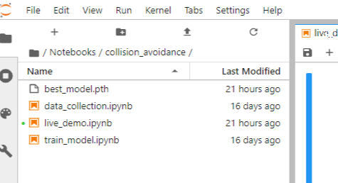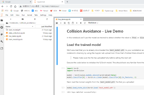 ![]() 写真1 2系統のリポバッテリ関連 ![]() 写真2 「best_model.pth」が無い状況 ![]() 写真3 「best_model.pth」のダウンロード先ExamplesサイトのURL ![]() 写真4 Examplesサイトの画面 ![]() 写真5 「best_model.pth」のダウンロード元 ![]() 写真6 「best_model.pth」のダウンロードの画面 ![]() 写真7 「best_model.pth」のダウンロードフォルダーの画面 ![]() 写真8 「best_model.pth」のダウンロード確認画面 ![]() 写真9 「best_model.pth」のコピー完了確認の画面 ![]() 写真10 JetBot起動 ![]() 写真11 ホストPC上のCollision_Avoidanceの画面 ![]() 写真12 「best_model.pth」が追加された画面 |