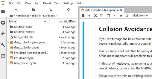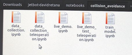 ![]() 写真7 Homeディレクトリ 「Downloads」フォルダ ![]() 写真8 「jetbot-davidetana.zip」サブフォルダ ![]() 写真9 「jetbot-davidetana.zip」のOpen作業 ![]() 写真10 「jetbot-davidetana」サブフォルダ ![]() 写真11 「notebooks」 ![]() 写真12 「cllision_avoidance」 ![]() 写真13 「data_collection_teleoperetio.ipynb」 ![]() 写真14 Homeディレクトリ 「Notebooks」フォルダ ![]() 写真15 「cllision_avoidance」 ![]() 写真16 「data_collection_teleoperetio.ipynb」の確認 ![]() 写真17 「ホストPCによる確認」 ![]() 写真18 「ホストPCによる確認」画面の拡大 |