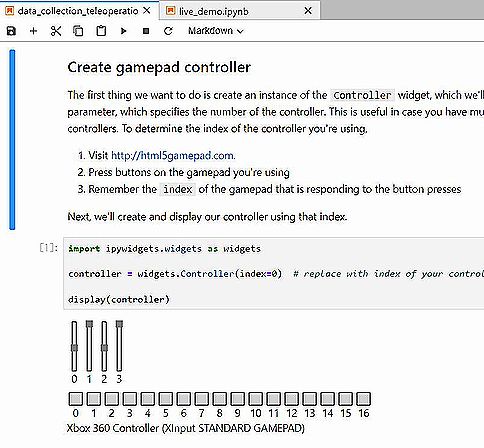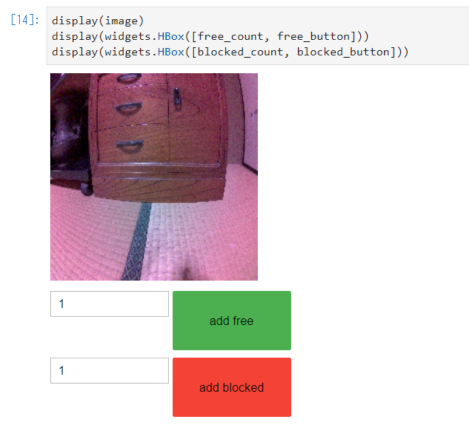 ![]() 写真1 「Jupyter Notebook」の操作 ![]() 写真2 「data_collection_teleoperetio.ipynb」選択 ![]() 写真3 「Visit http://html5gamepad.com」 ![]() 写真4 「Create gamepad controller」 ![]() 写真5 「コントローラ」のコマンドの変更 ![]() 写真6 「webカメラ」の起動 ![]() 写真7 「free」、「blocked」のクラス分け押しボタン ![]() 写真8 「free」の画像データの例 ![]() 写真9 「blocked」の画像データの例 ![]() 写真10 「detaset」ファイルの作成 ![]() 写真11 「detaset.zip」ファイルの作成 |