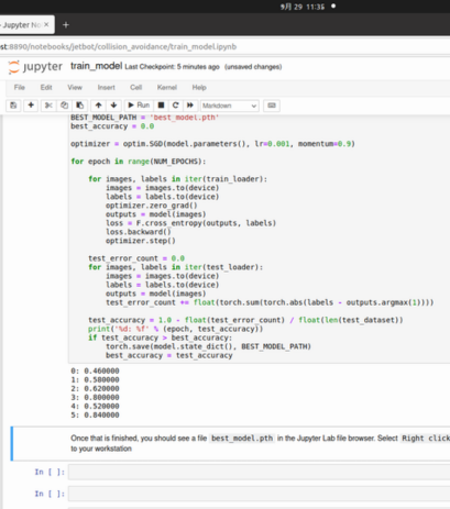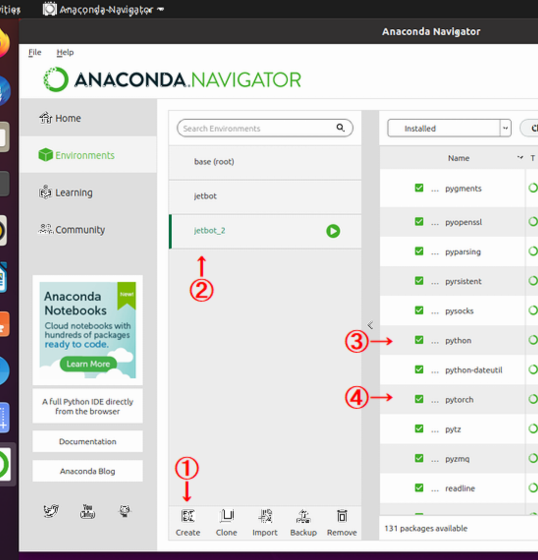 ![]() 写真1 書籍「ゼロからわかるLinuxのはじめ方」 ![]() 写真2 クリーンインストール開始 ![]() 写真3 インストール言語は英語を選択 ![]() 写真4 インストール中 ![]() 写真5 インストール完了 ![]() 写真6 インストール後の処理 ![]() 写真7 Anacondaのダウンロード ![]() 写真8 AnacondaをHOMEへ ![]() 写真9 Jetbot関連ファイルの確認 ![]() 写真10 Jetbotのファイルの確認 ![]() 写真11 Jetbotのファイルの確認 ![]() 写真12 pythonのバージョンの確認 ![]() 写真13 CUDAのバージョン確認 ![]() 写真14 グラボの認識の確認 |