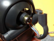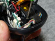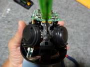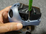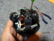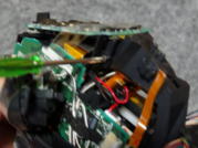 < 頭部の加工作業写真 > @ チルト用のカプリング機構部?は、写真16のようにハブとインサート部を外し、写真19のように白色のインサートをサーボから外し、再度、写真20のように組み直しました。 A 次に、写真21のように1.5mmの穴を、モータが挿入されているケーシングにとどき、少し食い込むまで、しかもモータを傷つけないように開けました。 B 穴の開ける位置は、固定する首の位置を事前に確認しながら実施しました。 C 当方は、2mmX5mmのタッピングビスを使い写真22のように固定しました。 D 分解工程とは逆の手順で組み立作業を行い、再組立の終了が写真24です。 E この加工により、実際にAIBOを起動した時は、チルト用のサーボは空回り状態となりますが、「AIBO 起動写真」のように、その他の機能に特に気になる影響はでませんでした。 ![]() ![]() 写真13 写真14 ![]() ![]() 写真15 写真16 ![]() ![]() 写真17 写真18 ![]() ![]() 写真19 写真20 ![]() ![]() 写真21 写真22 ![]() ![]() 写真23 写真24 |