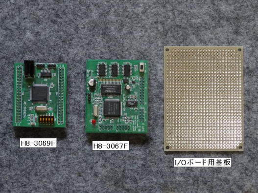 この書籍でコントロールボード(この書籍ではマイコンボードと記載)に使用するH8は3067Fですが、吉野さんのHPでは、代替品として3069Fも使用されていますので、写真2のように、取敢えず両方のボードを秋月電子通商で入手しました。 因みに秋月電子通商の67F、69FのURLは 「ルネサスH8マイコン」 です。